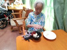 なんと男性のご利用者様が上手に作られて「お〜!すごいじゃん!」と皆さまから大歓声と拍手喝采