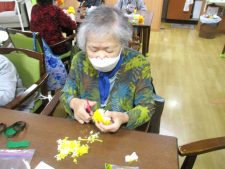 マニキュアで花びらにお好きな色を塗っていただくのですが…「うまく塗れんよ~。」「どうやるん?」と…皆さま一生懸命に集中されるも「やっぱり怖いけん、代わりにして~!」と笑いながらおっしゃられる方も(#^^#)