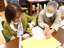 各テーブルでそんな会話をされながら、見本通りに忠実に配置される方や自由にレイアウトを楽しむ方、悩まれて職員と一緒に「ここがいいかな?」「もう少し上にしてみようか。」と相談される方も…