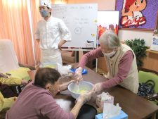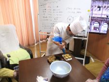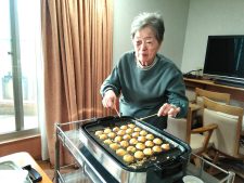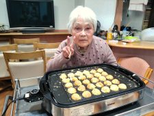 ご入居者様にも竹串で丸くひっくり返していただき、楽しい時間を共有できて嬉しかったです。