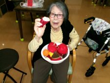 フェルトで作った芋や栗、りんごを投げていただきました。ボールは丸くて持ちにくいご利用者様もいらっしゃいますが、フェルトは手に持ちやすく、見た目でも楽しんでいただけました(*^-^*)
