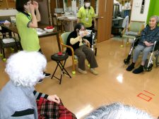 玉入れは、同じフロアの方と協力されて一つでも多く投げ入れようとされていらっしゃいました(*^▽^*)