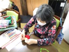 色とりどりの画用紙の中から「この色がええかねえ。」「迷うねえ〜。」と楽しそうに選ばれます。