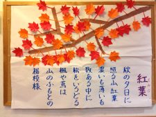 ソレイユ南竹屋では、フロアの壁画のもみじが赤く染まってご入居者の皆様といっしょに“もみじの歌”を毎日大合唱しています(^^♪