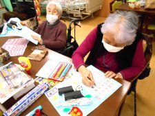 完成した絵馬を「うれしいね♡」「きれいじゃね。」とご利用者さま同士で絵馬をしみじみ眺められる姿が印象的でした。