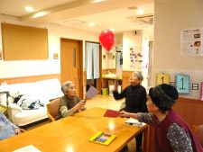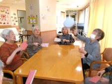 皆様、輪になって羽根の代わりに風船をポンポンついてもらうのですが…「落とさないで頑張ろう✊」と一致団結し、だんだんエキサイトされるほど、楽しく賑やかなお正月を迎えることが出来ました