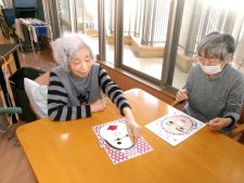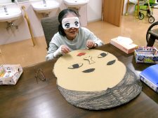 福笑いは、とても大きな顔だったので、出来上がった“おかめさん”の表情もご利用者様それぞれの個性があり、魅力的な仕上がりでした(^_-)-☆