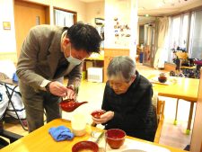 お屠蘇を飲まれたご入居者様は「美味しいねぇ」と笑顔に☺